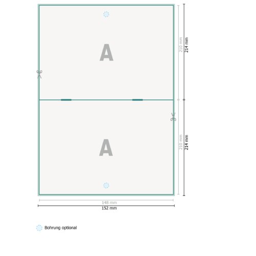 - Aufhängung: Lochung oben mittig (Ø 5 mm), 7,5 mm von der Blattkante entfernt