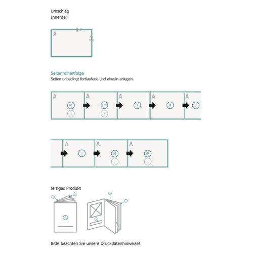 - wir übernehmen für Sie das Ausschießen des Innenteils, also die Anordnung und Positionierung der Seiten auf dem Druckbogen