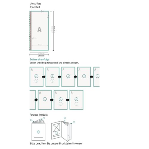 - Spiralbindung erfolgt gemäß Leserichtung immer links