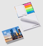 Die Haftnotiz-Blöcke in Standardformaten können optional mit einem Softcover versehen werden. So schaffen Sie eine zusätzliche Werbefläche für ein schönes Motiv oder weitere Informationen.