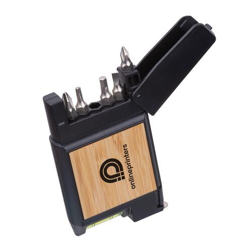 - 3 Meter Maßband aus Kunststoff mit Wasserwaage, Feststelltaste und fünf verschiedenen Bits