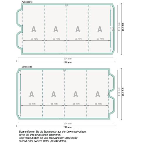 - Lieferung: fertig gestanzt/gerillt und plano liegend