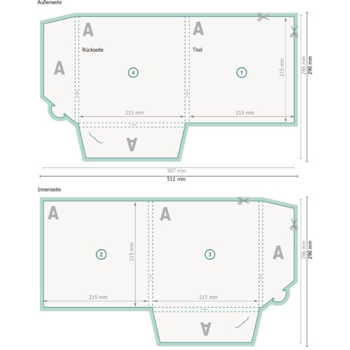 - Lieferung: fertig gestanzt/gerillt und plano liegend