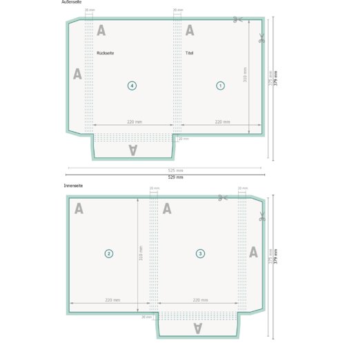 - Datenformat (inkl. 2 mm Beschnitt): 52,9 x 37,9 cm