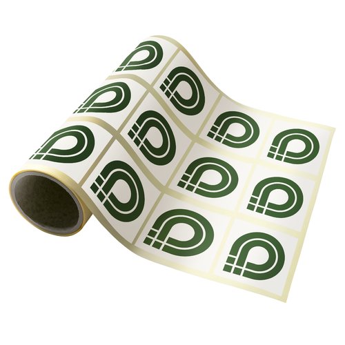 - die Etiketten werden freiliegend (ohne Beschnittmaterial) nebeneinander auf dem Trägermaterial platziert
