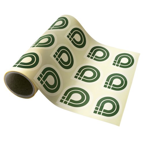 Selbstklebende Papier-Etiketten in freier Form, konturgeschnitten.