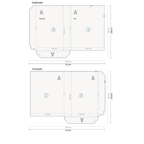 Druckdatenhinweise Mappen mit Laschen, A5, innen und außen bedruckt