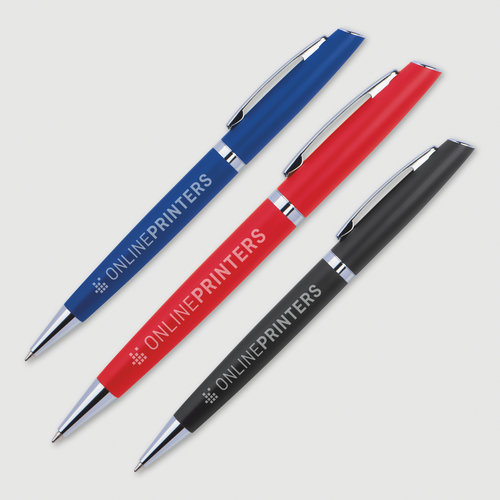 Schreibsets bestehend aus einem Drehkugelschreiber und einem Tintenroller aus Metall in einer Pappschachtel