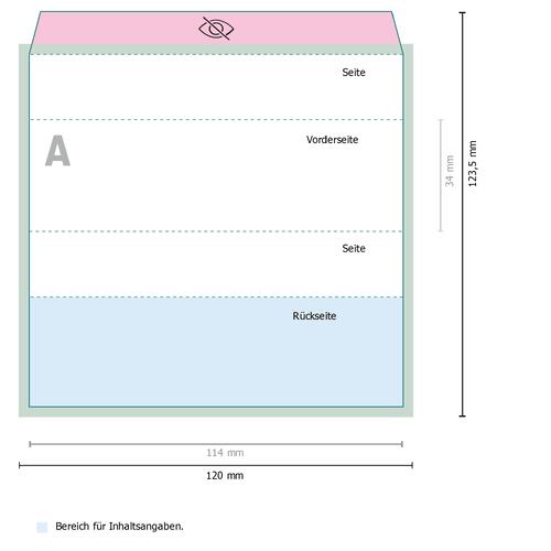 - Die gesetzlichen Pflichtangaben (Inhaltsangaben, Mindesthaltbarkeitsdatum, Hersteller/Inverkehrbringer etc.) werden im Rahmen des Produktionsprozesses automatisch eingefügt. Bitte beachten Sie die gekennzeichneten Bereiche im Datenblatt sowie in der Druckvorlage