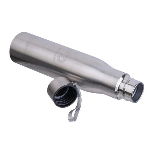 - Trinkflasche aus recyceltem 304er-Edelstahl mit Trageschlaufe am Deckel und einem Füllvermögen von 900 ml